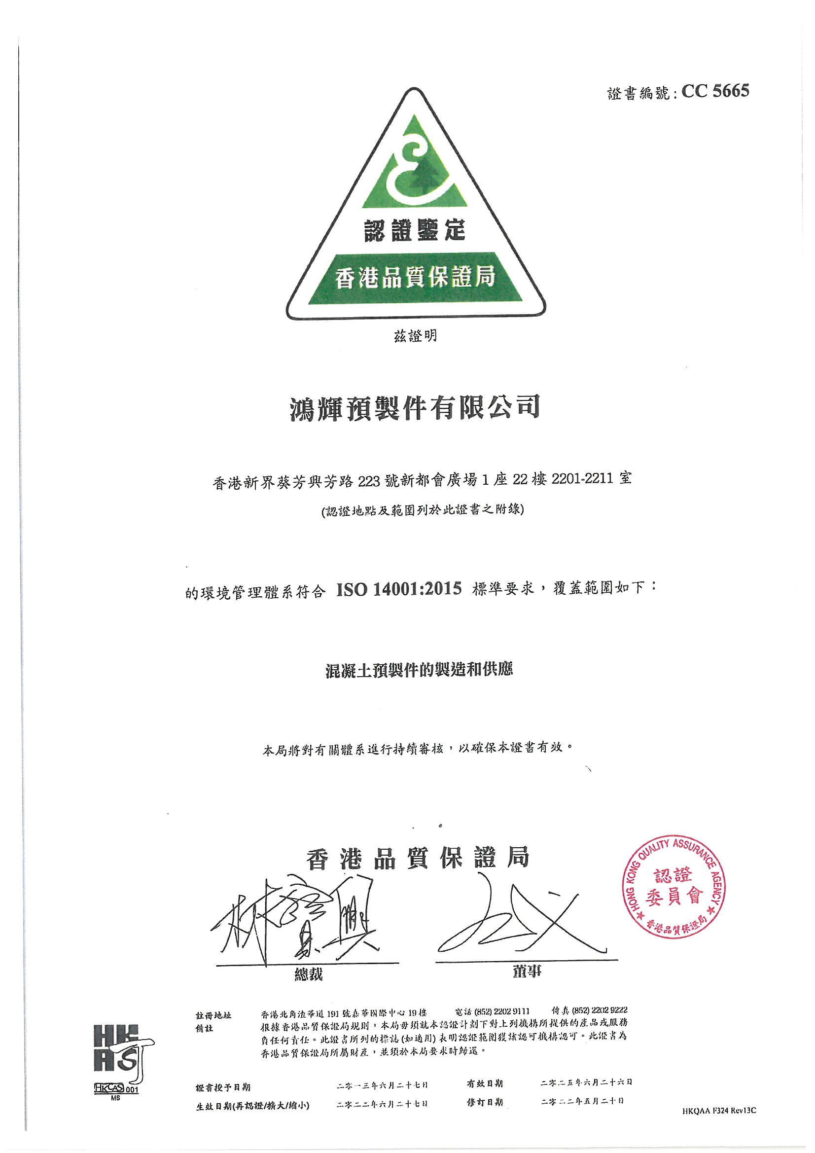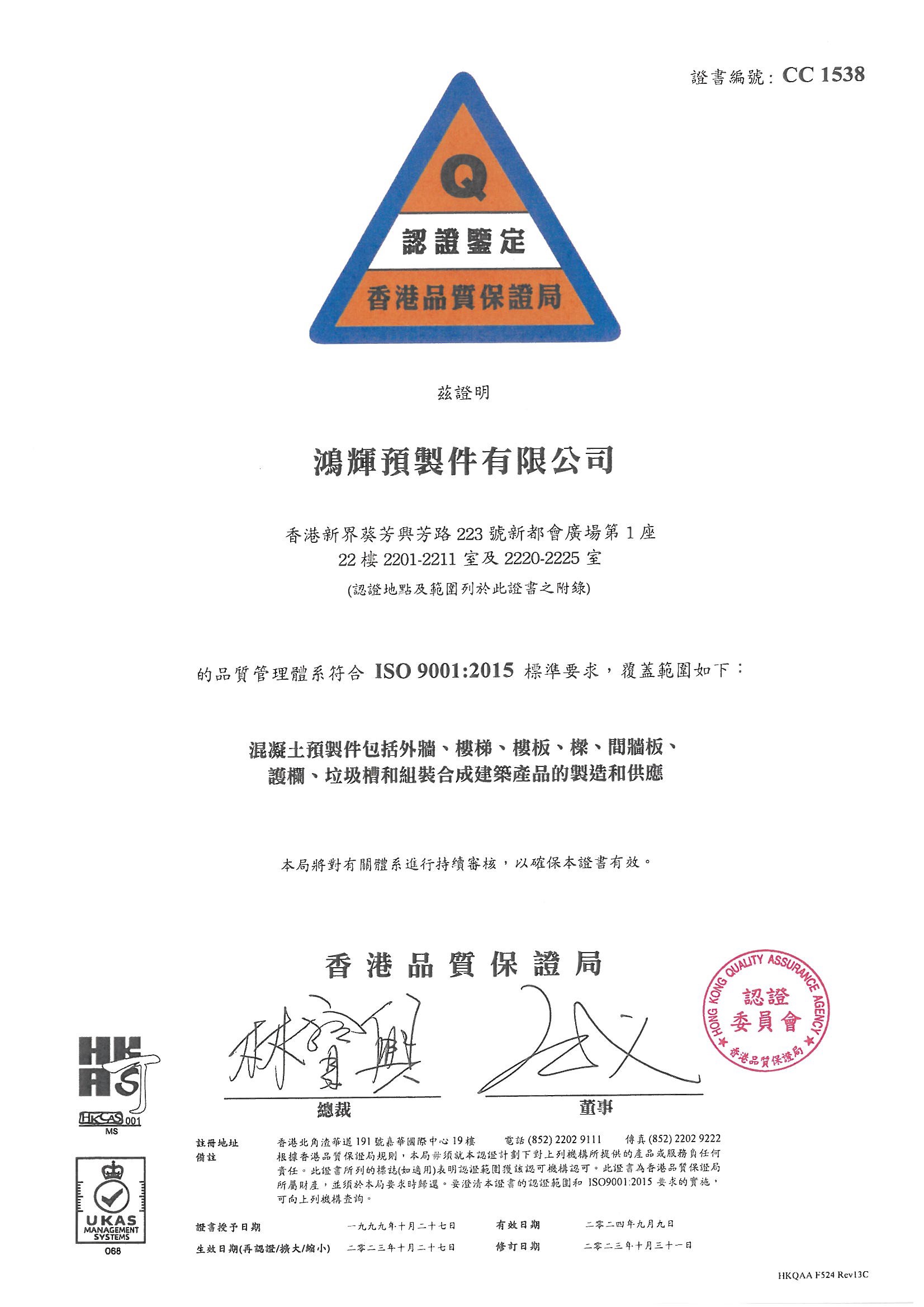 鴻輝預製件有限公司的業務宗旨是:根據國際標準ISO9001進行運作,以製造和供應混凝土預製構件;
